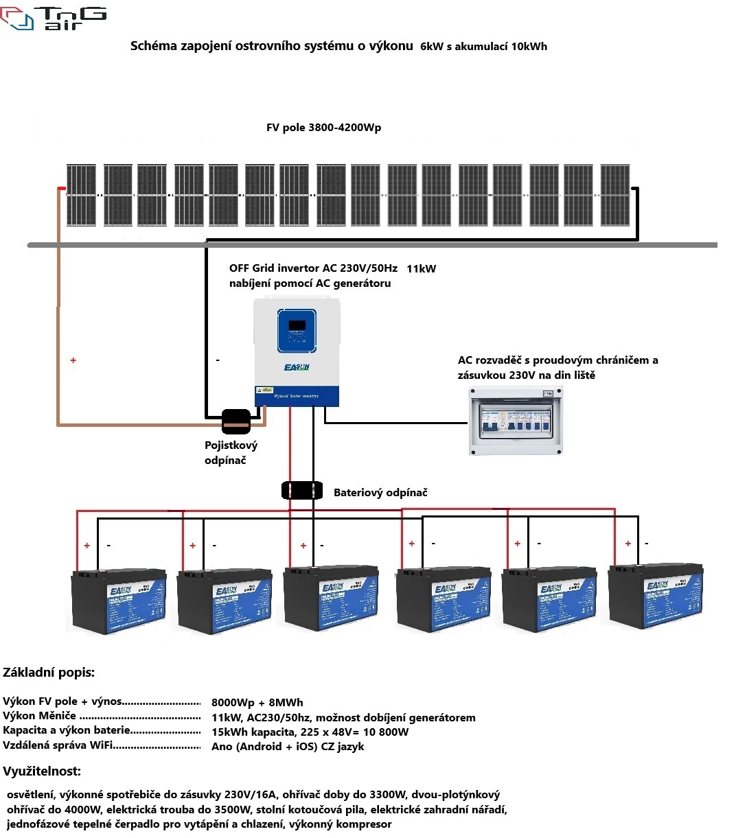 Příklad 1. SCHÉMA SEZÓNÍHO OFF-GRID SYSTÉMU - varianta 6kW/230V