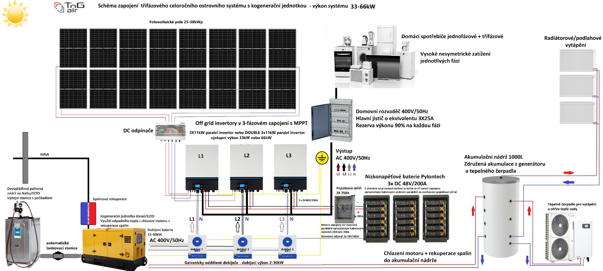 Příklad 2. SCHÉMA CELOROČNÍHO OFF-GRID SYSTÉMU - varianta 33kW/400V