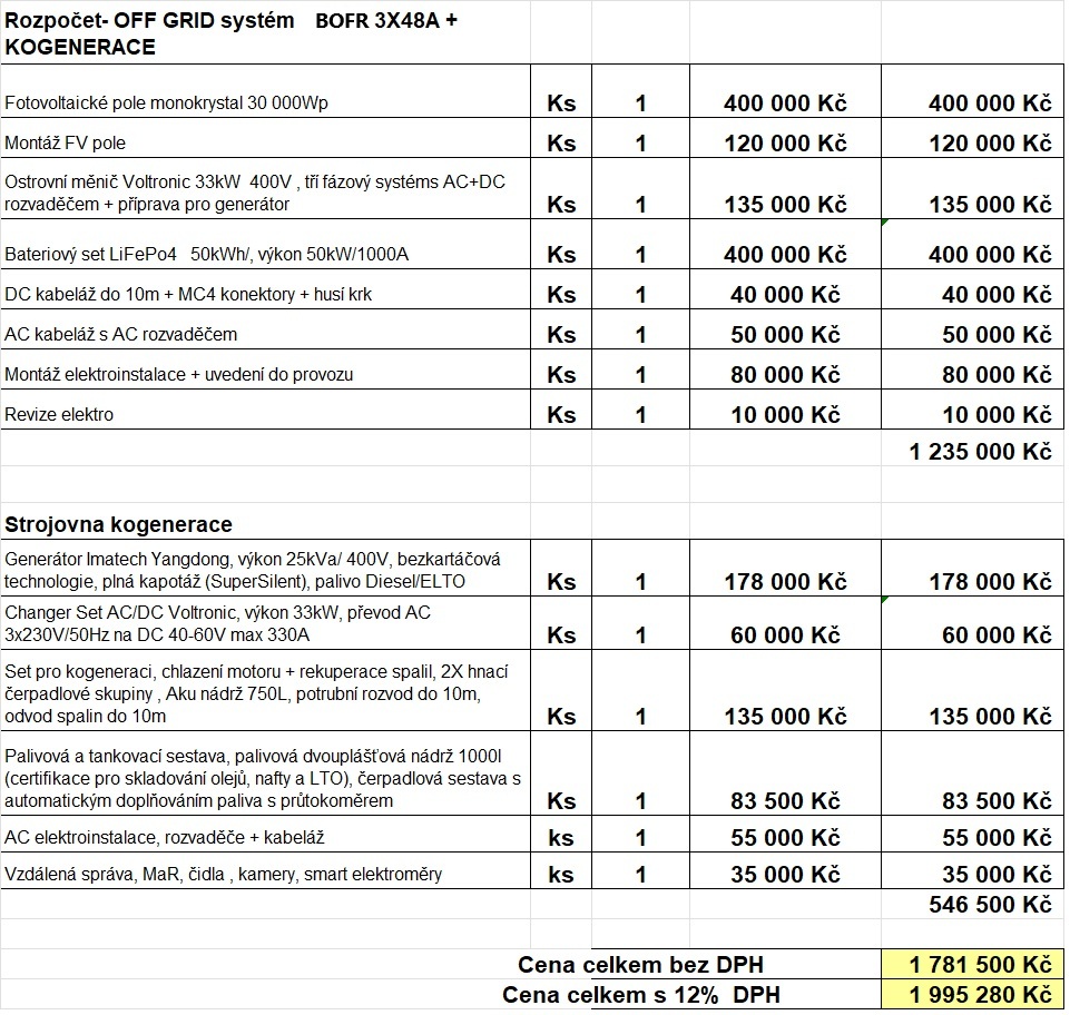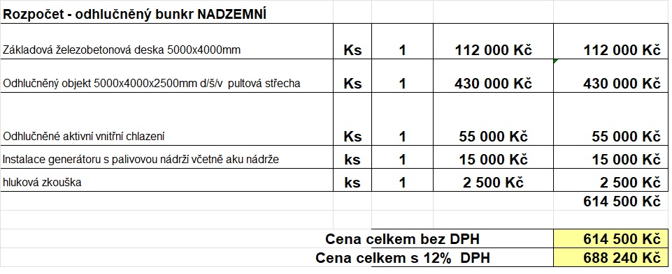 Verze CELOROČNÍ režim s kogenerací 15kW s podzemním bunkrem.....................2 991 530,-Kč