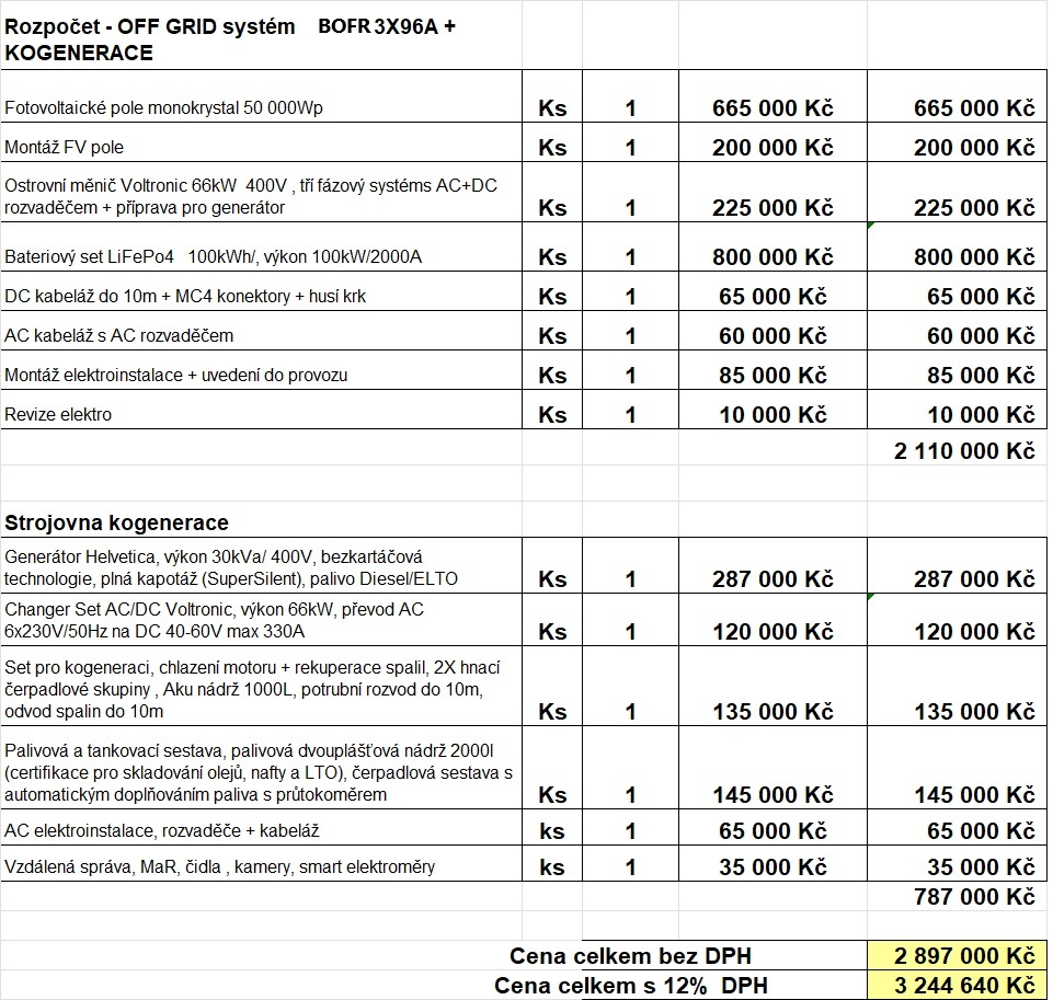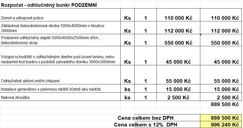 Verze CELOROČNÍ režim s kogenerací 30kW s podzemním bunkrem....................4 240 880,-Kč